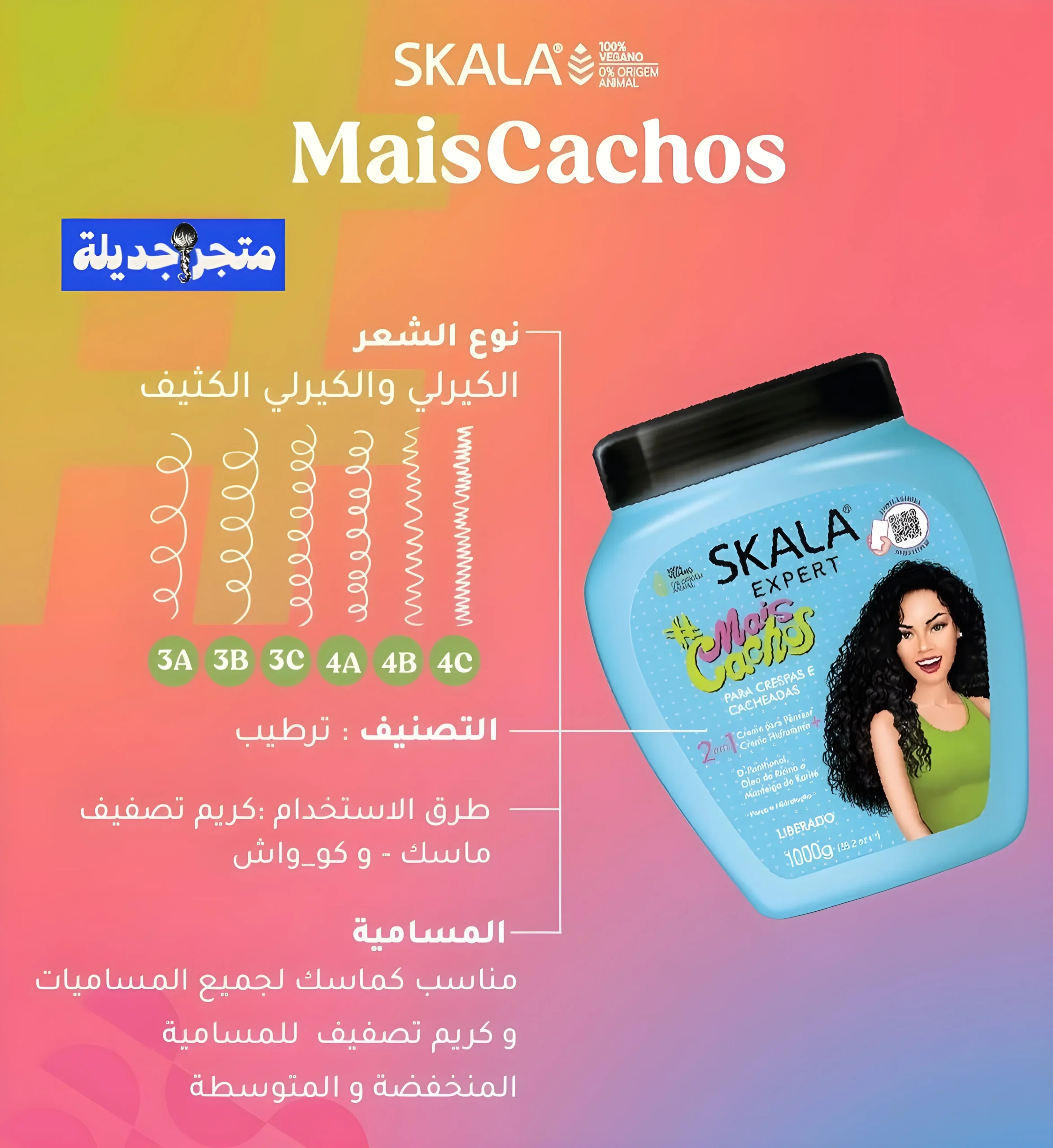- SKALA Mais Cachos Cream يرطب شعرك بقدرة فائقة، لغناه بزبدة الشيا والزيوت المرطبة والمغذية مثل زيت الأرغان وزيت الخروع.