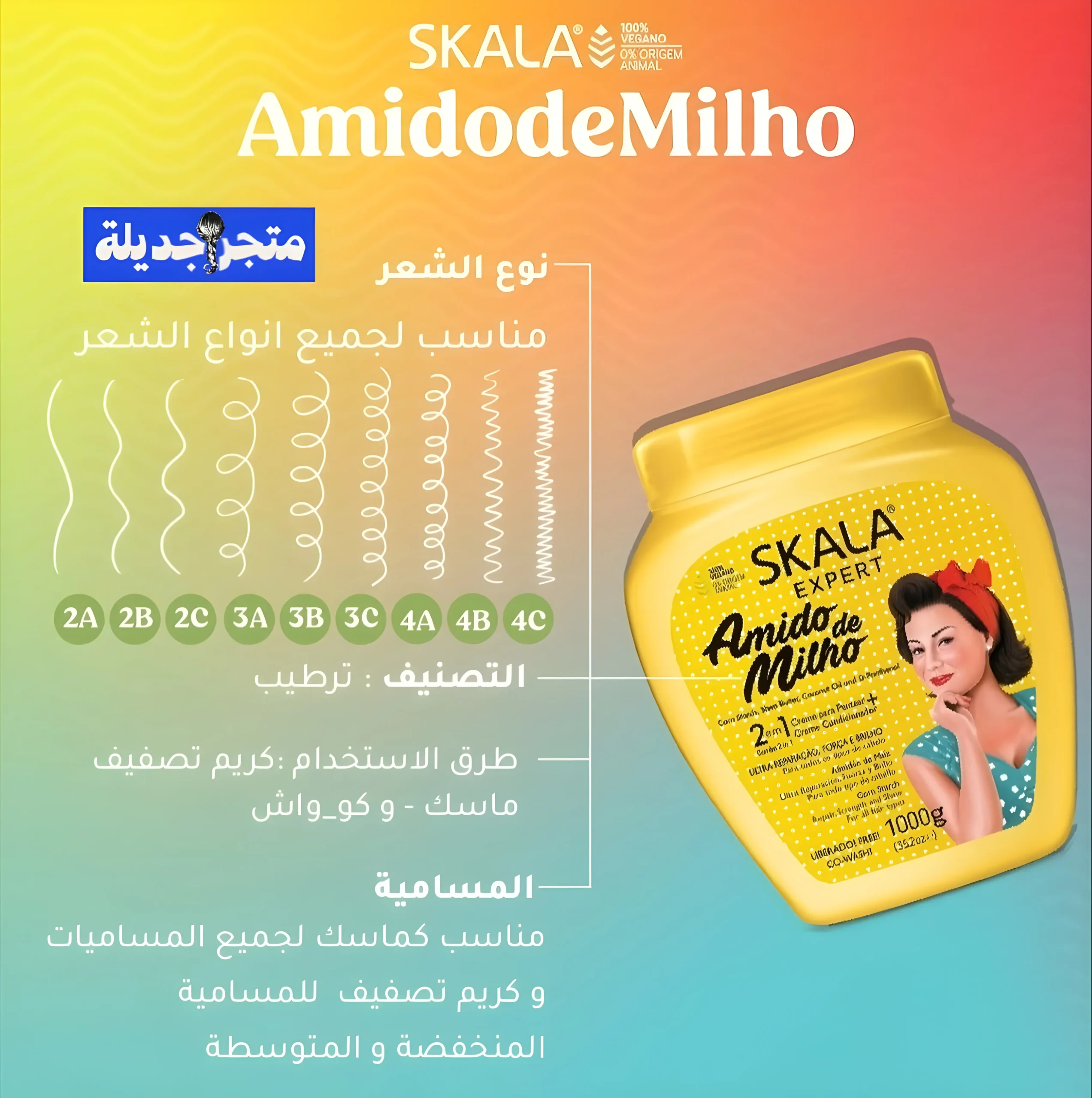 كريم skala amido de milho أو ما يعرف بماسك كريم سكالا الاصفر من أنواع skala الأكثر استخدامًا ورواجًا، لفعاليته في الترطيب.