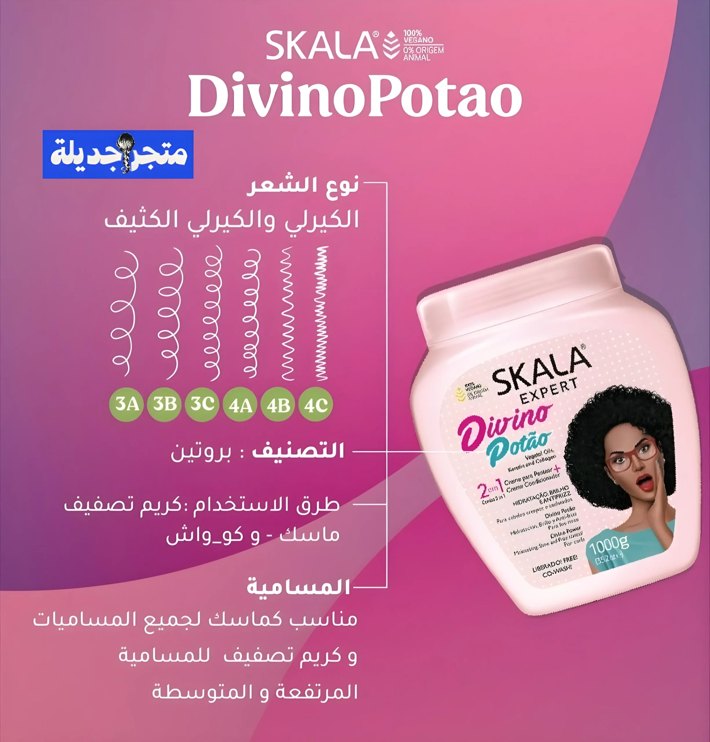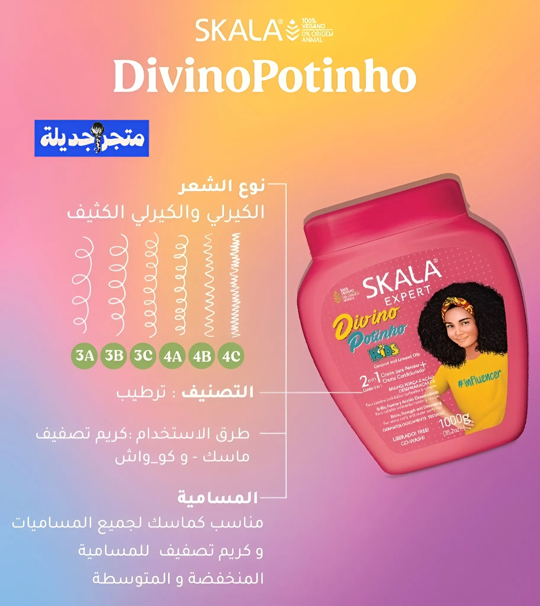 أصدرت سكالا العديد من المنتجات المناسبة والآمنة للأطفال لكن Skala Expert Divino Potinho 2 in 1 for Kids أفضل انواع كريم سكالا للشعر الكيرلي للاطفال.